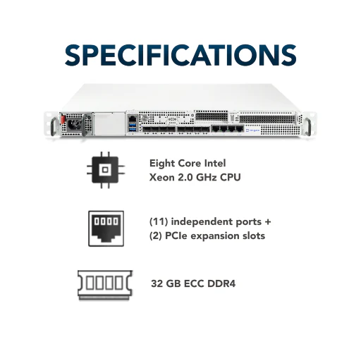 Ez a biztonsági átjáró egy lenyűgöző 2,0 GHz-es, 8 magos, 16 szálas Intel® Xeon® D-1733NT processzorral büszkélkedhet, Intel AVX-512 processzorral a kivételes tűzfal- és VPN-teljesítmény érdekében. A Netgate 8300 az Intel AVX-512 erejét kihasználva felgyorsítja a VPN-műveleteket, növeli az átviteli sebességet és csökkenti a terhelést, miközben optimalizálja az alapvető tűzfalfunkciókat a fokozott hálózati biztonság és teljesítmény érdekében. Négy 10G SFP+ porttal, négy 1G SFP porttal és három 2,5G RJ-45 porttal, valamint a PCIe kártyákon keresztül 25G és 100G portokra bővíthető megoldással a Netgate 8300 jövőbiztossá teszi hálózati infrastruktúráját, és könnyedén skálázható vállalkozásával.